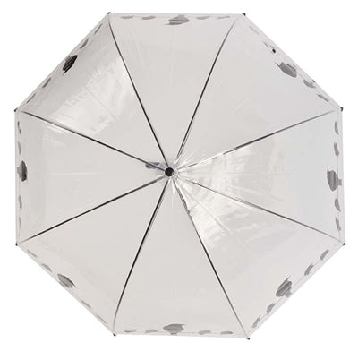 De Paraplu Vogelkooi Transparant / Zwart van 85 cm is een stijlvolle paraplu met gebogen handvat en transparante bovenzijde met opdruk van vogels. Eens iets anders, waarmee je lekker droog blijft en ook nog eens opvalt! De paraplu is transparant en bedrukt met de silhouetten van vogels op een draad. Niet alleen ziet dit er leuk uit, maar ook heb je zo goed zicht op jouw omgeving omdat je door de paraplu heen kunt kijken. De paraplu is voorzien van een gebogen handvat, zodat hij makkelijk te hanteren is en je hem overal aan op kunt hangen.