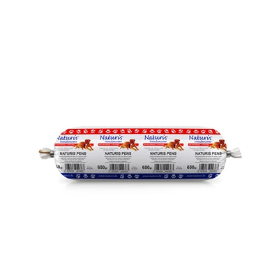 De Naturis Houdbaar Pens 650 gr is een volledige, lang houdbare diervoeding voor honden met verse ingrediënten zoalspens. Deze lang houdbare worst is speciaal ontwikkeld voor bijvoorbeeld vakanties. Naturis Vers vlees Houdbaar is van dezelfde grondstoffen gemaakt als het diepgevroren vers vlees. Dus van vlees dat geschikt is voor menselijke consumptie en eveneens afkomstig van EEG goedgekeurde slachthuizen. Aan alle soorten is ook zeewier toegevoegd daar dit een natuurlijke bron van verschillende vitaminen is voor jouw hond.