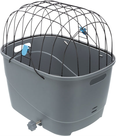 De Trixie Fietsmand voor Bagagedrager met Draadkoepel Kunststof Grijs 46X36X47 cm is een kunststof fietsmand voor de hond, met snelbevestiging en ligmat.