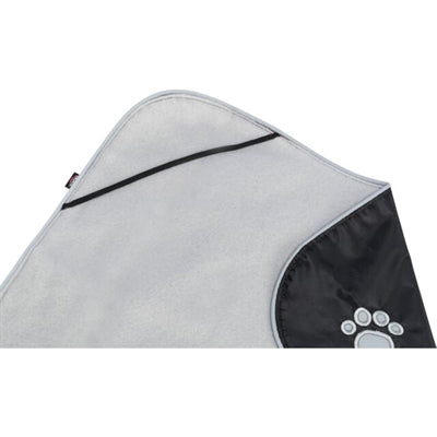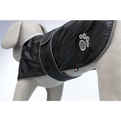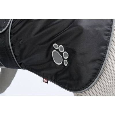 De Trixie Jas Orléans Zwart van 45 cm is een waterdichte regenjas met fleece voering voor de hond, met verstelbare buikband en reflecterende elementen. Met deze fijne regenjas van Trixie blijft jouw hond droog tijdens regenachtige wandelingen. De jas valt geheel over de rug en schouders van de hond heen en zorgt er zo voor dat er geen water naar binnen kan lopen, zonder dat de bewegingsvrijheid bij de poten verloren gaat. De jas is voorzien van een buikband die rondom loopt en verstelbaar is voor een goede pasvorm. De reflecterende elementen zorgen dat jouw hond beter zichtbaar is in het donker. Het borstgedeelte sluit met klittenband.