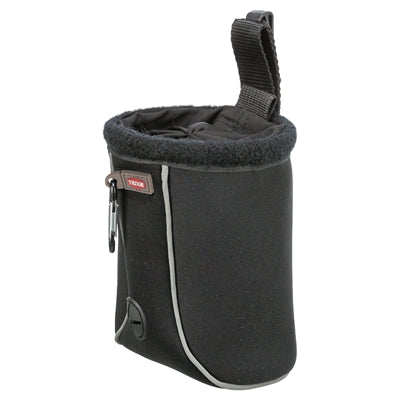 Het Trixie Snackzakje Twist Treat Assorti 14X11 cm is een multifunctionele snackzak voor de hond, met regelbare draaisluiting, poepzakjeshouder en karabijnhaak, waterdicht. Dit handige snackzakje is van alle markten thuis! Uiteraard biedt dit handige tasje alle ruimte voor de beloningssnacks die jij op wandeling mee wil nemen voor jouw hond. Ideaal aan dit tasje is de handige twist off-sluiting. Door de stof strakker of losser in elkaar te draaien, reguleer je de toegang tot de inhoud. De sluiting kan geheel gesloten worden indien er even geen snacks gepakt hoeven te worden en beschermt dan ook tegen de regen. Hiernaast is dit handige zakje voorzien van een geïntegreerde poepzakjes-dispenser, zodat je ook jouw poepzakjes altijd bij de hand hebt zonder nog een extra houder mee te hoeven nemen. Aan de karabijnhaak maak je bijvoorbeeld een hondenfluitje of clicker vast, en in de buitenvakjes stop je losse spulletjes die je op de wandeling meeneemt. Met reflecterende buitenvakken die het tasje goed zichtbaar maken! Met bevestigingslus en -clip voor aan broekriem.