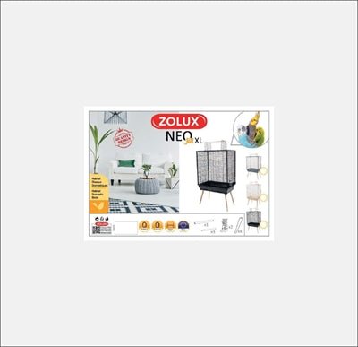 De Zolux Vogelkooi Neo Jili XL Zwart 81X48X132 cm is een ruime vogelkooi in Scandinavische stijl met een extra zitplaats bovenop en diverse zitstokken.